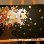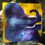 J'aime travailler l'acrylique, mais aussi manier le crayon et les feutres. J'installe mon chevalet dans la cuisine, et je m'inspire de mon environnement, des voyages, et de nos envies.